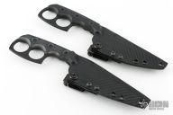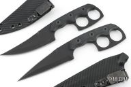 This knife by Apex Offensive, Half Face Blades and WEKBD features a black double edged blade with notched thumbrest, full tang construction, .147" blade stock and 1.287" blade depth. The handle features black G-10 scales with a 1" rings. Includes a black kydex sheath. Excellent Condition.