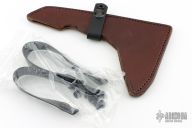 The leather Ragnarok Scabbard is a cool-old school way to carry your Ragnarok if Kydex isn't your thing.  There is a Pull the Dot flap with shock cord to aid moving the flap out of the way to make re-sheathing easier.