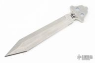 The Zenith Live Blade features a unique, symmetrical spear point blade. Only one side of the blade is sharp, while the other has a false edge. Since Flytanium is a huge fan of bushing-driven pivots, they decided to add this component to the Zenith. You will notice the pivot holes are larger to accommodate the bushings. This allows for a smooth action while eliminating some of the play associated with balisongs. The Zenith is made from premium 154cm steel, given a stonewash finish, and sports the Flytanium DeadFly logo. The stock 51 blade weighs about .98 oz while the Zenith Live Blade weighs 1.03 oz