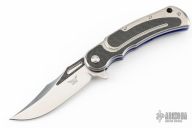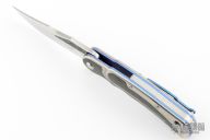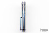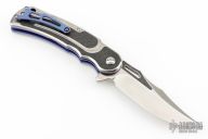 This Citadel linerlock flipper by Todd Begg features a mirror polished clip point blade with carbon fiber inlays.  The handle features a satin finished titanium frame with carbon fiber inlays over anodized titanium liners and a matching tip up pocket clip.  Titanium Backspacer.  Includes the original box and padded case. Excellent condition.