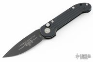 This LUDT side opening automatic by Microtech has a black blade with a standard edge and a black aluminum frame. Stainless steel clip. Dated 10/2018 and serial number 09696. Comes with original box and papers. Has some scratches and scuffs, good condition otherwise.