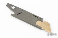 This Rexford RUT (Rexford Utility Tool) from Todd Rexford uses a standard utility razor blade. Blade can easily be replaced. This piece features a functional lanyard hole, flat head screwdriver/pry tip, and bottle opener. Has a couple light scuffs, otherwise excellent condition.