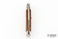 This 9" Picklock by Frank Beltrame features a tumbled bayonet ground blade. The handle has polished nickel silver bolsters, front and rear, cocobolo scales, brass liners and stainless steel spring. Excellent condition.