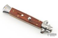 This 9" Picklock by Frank Beltrame features a tumbled bayonet ground blade. The handle has polished nickel silver bolsters, front and rear, cocobolo scales, brass liners and stainless steel spring. Excellent condition.