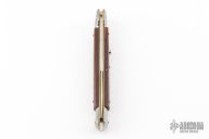 This 11" Swivel Bolster Auto by Frank Beltrame features a tumbled bayonet ground blade with false top edge. The handle has stainless steel bolsters, front and rear, snakewood scales, brass liners, stainless spring. Excellent condition.