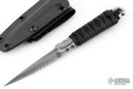 Designed by renowned Master Bladesmith Jason Knight, this modern interpretation of the concept is crafted from tough A2 tool steel. Its one-piece integral construction features a meticulously machined radial texture pattern on both sides of the coffin-shaped handle. Symmetrical grooves at both ends of the handle provide additional grip security and are complemented by an oval lanyard hole. The stout, perfectly symmetrical dagger blade is accented by central fullers on both sides and features two full-length cutting edges.