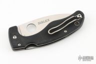 The concept of the Junior folder comes from Romanian Technical Manager Alexandru Diaconescu. His young son was entering the curious-boy-years, ready and asking for his first pocketknife. The request brought-up normal parental questions and concerns regarding knife safety and usability motivating Dionescu to create a folder with a prominent guard behind the blade’s sharpened edge. The guard maintains the hand in firm control over the blade while creating a block, effectively stopping fingers from sliding forward and connecting with the sharp edge. And it’s surprisingly comfortable in any sized hand- adult man, woman or juvenile. Position of the guard in the G-10 handle leaves little room for a locking mechanism and a Spyderco Compression Lock is added for its compact components and impressive strength. Screw-together construction, an oversized lanyard hole and a deep pocket left- or right-handed tip-up wire clip further complement the handle. The VG-10 blade is ground full-flat and offered Plain Edged for the best available cutting performance with non-skid jimping located on top of the spine behind the Spyderco Round Hole.
