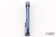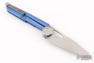 This MT-10 by NOC Knives features a satin finished blade with thumbhole, can be front flipped as well. The handle has an anodized titanium frame, stainless steel pivot, tumbled titanium backspacer and tip up clip. Rides on ceramic bearings. Nice detent, lockup and blade seating. Comes with original box. New from maker.