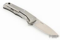 This is the Lion Steel TRE, has Titanium frame Black G10 slabs and the steel is Bohler M390. The blade finish is Stonewash.