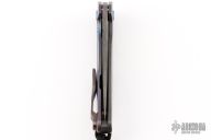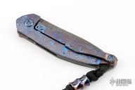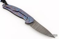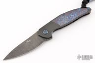 This NEO by Jens Anso features a Damasteel drop point blade with flipper. The handle is comprised of milled zirconium scale on the "A" side with Timascus inlay over zirconium backspacer with lanyard bail. Lockside is Timascus with matching machined clip that is positioned for tip up, right hand carry. Includes original box, papers, and card dated March 2019. Has a couple light scuffs and scratches, excellent condition otherwise.