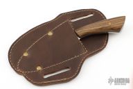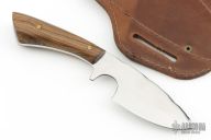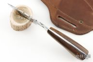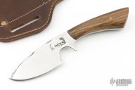 This Utility by Lucas Wojakevicz features a satin finished blade with fileworked spine, .108" blade stock and 1.383" blade depth, full tang construction. The handle has wood scales with brass pins. Comes with a brown leather sheath and makers card. New from maker!