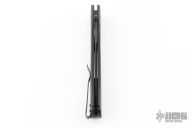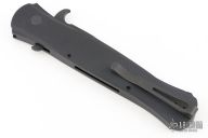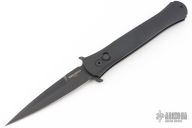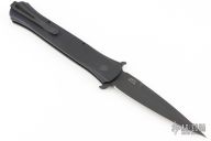 This Large Don by Pro-Tech features a black blade with false top edge. The handle has a black aluminum handle with 3D milled rings, black tip up stainless steel clip. Excellent condition. PR3 #251