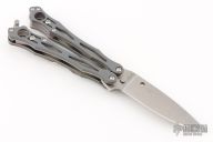 Spyderco's original SmallFly was a uniquely different "spin" on the balisong, or Filipino butterfly knife. Now this remarkable design is back with this special limited featuring full-flat-ground, drop-point blade profile crafted from CPM-Cru-Wear. Like the original, it features skeletonized twin handles with full stainless steel liners and peel-ply-textured Gray G-10 scales. The Round Holes at the butt end of both handles reflect Spyderco's iconic trademark and help achieve optimal balance for high-speed manipulation. A spring-loaded latch attached to the "free" handle secures the handles together in the closed position, while the removable wire pocket clip may be attached to either side of both handles as both a carry option and tactile index.