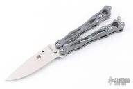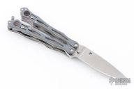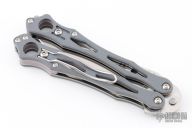 Spyderco's original SmallFly was a uniquely different "spin" on the balisong, or Filipino butterfly knife. Now this remarkable design is back with this special limited featuring full-flat-ground, drop-point blade profile crafted from CPM-Cru-Wear. Like the original, it features skeletonized twin handles with full stainless steel liners and peel-ply-textured Gray G-10 scales. The Round Holes at the butt end of both handles reflect Spyderco's iconic trademark and help achieve optimal balance for high-speed manipulation. A spring-loaded latch attached to the "free" handle secures the handles together in the closed position, while the removable wire pocket clip may be attached to either side of both handles as both a carry option and tactile index.