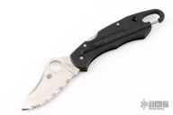 This Remote Release by Spyderco Knives has been discontinued. It has a fully serrated satin finished blade with thumbhole. The handle has a black FRN frame with a spring-loaded clip at the rear. Comes with original box. New condition.