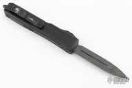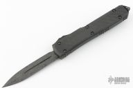 This Ultratech OTF by Microtech Knives features a D/E Damascus blade with a standard edges. The handle has a black aluminum frame with carbon fiber top and a black tip down stainless steel clip, black ringed hardware and glass breaker. S/N 291 dated 10/2021. Comes with original box and papers. Has a few light scuffs and some wear on the clip, otherwise excellent condition.