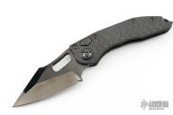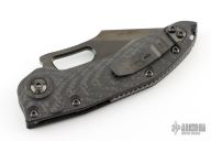This Stitch Auto by Borka Blades and Marfione Custom Knives features a DLC diamondwash finished blade with notched thumb and finger rests. The handle has a carbon fiber frame with a titanium backspacer and a satin stainless steel clip positioned for tip up carry. DLC two-tone hardware. Very nice action, lockup and blade seating. Comes with original box, nylon zippered case and COA dated 08/2022 and #013. Excellent condition.