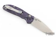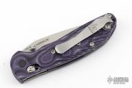 This Doug Ritter Mini RSK by Hogue Knives features a stonewashed blade with notched thumbrest and dual thumbstuds. The handle has milled purple G-10 scales with a stainless steel tip up reversible clip. Comes with original box, zippered case and papers. Has a couple light scuffs, otherwise excellent condition.