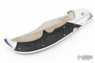 Like the swords of old the Espada’s are not for the weak, timid, faint of heart or those desiring another spring assisted play toy. Just pick one up and you’ll see what we mean! Definitely not politically correct, they are huge yet surprisingly well balanced and feature dramatically upswept clip point blades that are ideal for cutting, slashing and piercing. Made from vacuum heat-treated and sub-zero quenched Japanese 8A stainless steel and hollow ground to a thin, razor sharp edge, they will cleave through just about any obstacle or target in their path. To make your hand the real master of these awesome blades we have paired them with state of the art pistol grip handles. Strongly curved and equipped with multiple finger grooves and even a sub-hilt in the two larger models, they work perfectly in either a forward or reverse grip while offering unprecedented retention and reach through multiple grip extension options. To minimize overall weight and maximize strength and rigidity, we have CNC machined the frames and integral bolsters of the Espada’s handles from 7075 Aluminum billets. While quite costly, this material rivals even Titanium in strength and can endure years of the hardest abuse. Finally to make the handle as beautiful as it is effective and strong, we have mirror polished the dovetailed bolsters and attached glossy black G-10 handle scales using the latest high tech fasteners. We don’t believe any tactical folder can make a credible claim to being a “pocket sword” without possessing an incredibly strong and reliable lock and the Espada’s are no exception. That’s why we have equipped each model with our new multi-patented TRI-AD lock. Designed by Andrew Demko, the TRI-AD is unsurpassed in resisting positive pressure from the edge (cutting, slashing and chopping), negative pressure from the point (piercing, digging and chiseling), and impact pressure (whacks on the back of the spine of the blade) by diverting these forces first to its unique stop pin and then throughout the entire handle frame. At first thought, carrying a “pocket sword” as big and heavy as the Espada may seem impractical. However, after much experimentation, we have found this is not the case. Even the biggest model can be carried discreetly and unobtrusively in the front pocket of most pants and when clipped to the waistband and covered by a “bloused” shirt or sweater they totally disappear. Then in an emergency they can be drawn and opened in a single motion by snagging the patented thumb plate on the edge of a pocket."