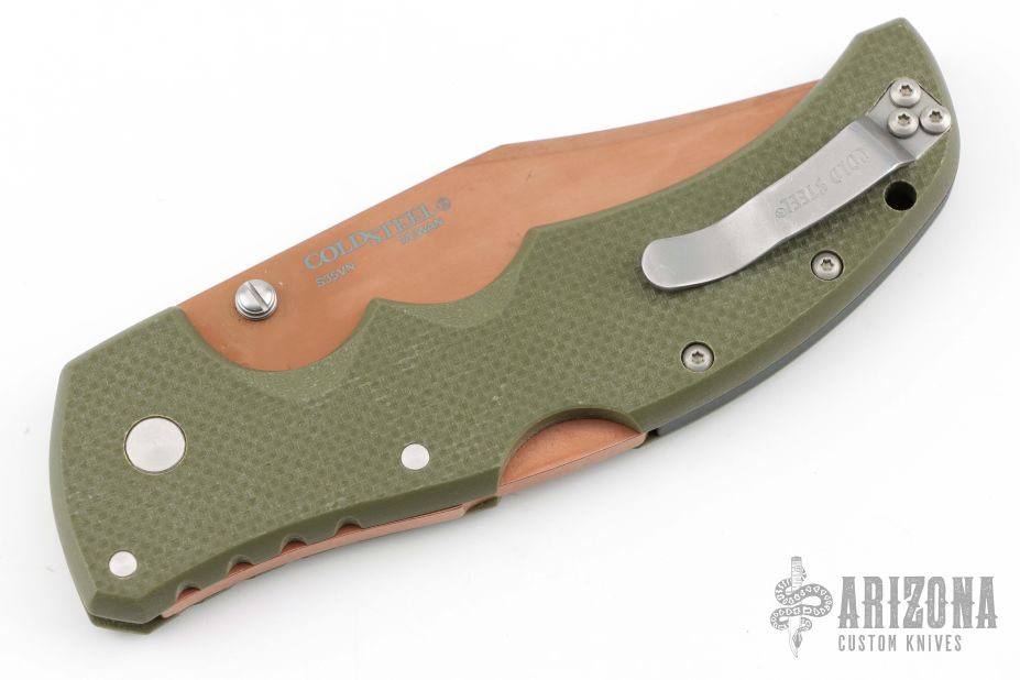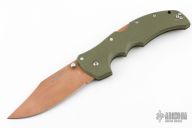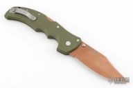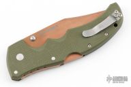 This Recon 1 folder form Cold Steel features a clip point blade with dual thumb studs. The handle has green G-10 scales with a stainless steel clip. Comes with original box and extra clip. Has a couple light scuffs and scratches, otherwise great condition.