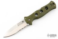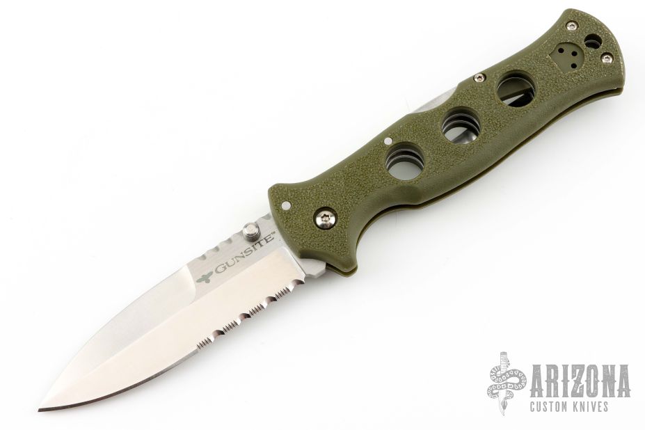 The Gunsite offers a robust Griv-Ex handle in OD green outfitted with Cold Steel's unbeatable Tri-Ad lock. The spear point blade is made from AUS-10A steel in a satin finish with serrations and jimping. The included pocket clip is reversible for left- or right-hand tip-up carry. If you're looking for a workhorse knife with a dash of collect-ability, then set your sights on this folder.