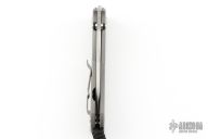 This Unumzaan from Chris Reeve Knives features a stonewash finish blade with dual thumb studs and notched thumbrest. The handle is comprised of glass blasted and milled titanium with matching tip up clip. Lanyard pin with lanyard and spacer bead in pommel. Comes with original box, papers and COA dated October 22, 2024. New condition.