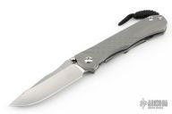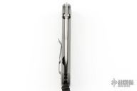 This Unumzaan from Chris Reeve Knives features a stonewash finish blade with dual thumb studs and notched thumbrest. The handle is comprised of glass blasted and milled titanium with matching tip up clip. Lanyard pin with lanyard and spacer bead in pommel. Comes with original box, papers and COA dated October 22, 2024. New condition.