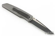 Designed by Jeff Harkins and made by Pro-Tech, this is a terrific D/A folder. The auto fire feature is achieved by depressing the lower corner of the first (closest to front of the handle) carbon fiber inlay. It opens fast, locks up well. Manual opening is equally effective, and with dual thumbstuds can be accomplished with either hand. Closes via the linerlock. Two-tone blade, aluminum frame and carbon fiber inlays with a black tip down stainless steel clip. #FPR180 on the tang. Comes with original box and papers. Excellent condition.
