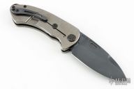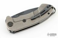 Theseus was an ancient Greek hero that killed the Minotaur in ancient Greek mythology. The blade is a classic drop-point style that is light, with its false edge, yet would leave a vicious wound channel. This knife really is the result of my evolving philosophy about blade and handle thicknesses and materials. This one has a PVD blade with notched flipper. The handle has a milled and tumbled titanium frame with a D2 backspacer with lanyard hole and a tip up titanium clip. Comes with original box, case and papers dated Jan 05, 2024. Excellent condition.