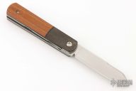 This Barlow Front Flipper Linerlock by Enrique Pena features a hand rub satin finished blade with front flipper and notched thumbrest. The handle has micarta scales with a stainless steel escutcheon, black liners, titanium frame and micarta backspacer. Comes with zippered case. Excellent coniditon.