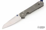 This Small Sebenza 21 by Chris Reeve features a tumbled blade with a single thumbstud. The frame has a bead blasted titanium with matching tip up clip. Nice detent, lockup and blade seating. Has some scuffs, otherwise good condition. Comes with original box, a filler tab and COA dated December 21, 2017.