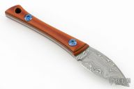 This fixed blade by Ben Krein features a Damasteel drop point blade with a full tang construction, .125" blade stock and .833" blade depth, full tang construction. The handle has vintage linen micarta scales with green G-10 liners. Lanyard hole in pommel. Excellent condition.
