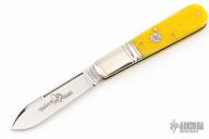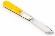 This slipjoint by Great Eastern Cutlery features a mirror finished blade with a nail nick. The handle has nickel silver fluted bolsters, brass liners, yellow bone covers, stainless steel spring. Has half stop. Excellent condition.