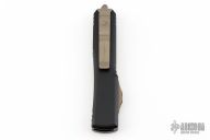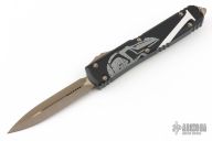From the Microtech Exclusive collection, the Microtech Spartan offers a refined design that is rugged enough for EDC while maintaining a unique collectible look. The Spartan's blade is marked with the Greek phrase Molon labe, meaning "come and take them", a classical expression of defiance. Bronzed hardware, blade and clip add a classic finishing touch to the design. This Spartan model features a dagger blade with a bronzed finish. Microtech equipped this version of the ever popular Ultratech D/A OTF knife with a smooth, contoured handle design that promotes increased comfort during use. This updated model provides the same dimensions, hardware, and durability offered by the "Tri-Grip" variation, but goes easier on the hands and pockets. For those unfamiliar with the Ultratech, it's a fully automatic knife with a double-action out-the-front mechanism, meaning the thumb slide deploys the blade and retracts it as well. The Ultratech knife from Microtech has set the bar for all OTF knives. Excellent condition with wrong microtech box (123-13ML). Has some light scuffs and scratches, otherwise excellent condition.