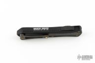 This Manticore-E by Heretic Knives features a double edged DLC tumbled blade with notched thumbrest. The handle has a black aluminum frame with Gold Dunes Fat Carbon inlays, Ti Nitride coated hardware and a DLC tip down clip. Comes with original box, lube, and drawstring pouch. S/N 150. Has a couple light scuffs and scratches, otherwise excellent condition.
