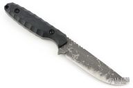 This Boreas by Kiku Matsuda features an acid etched blade with notched thumbrest, .168" blade thickness and 1.026" blade depth, full tang construction. The handle has black G-10 scales. Comes with kydex sheath and a belt clip. Excellent condition. The sheath is signed by Kiku