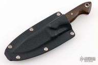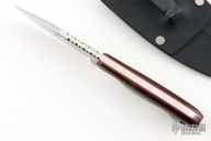 This Knife from Graham Knives features a satin finished blade with fileworked thumbrest, .187" blade stock and 1" blade depth. The handle has green canvas micarta scales with mosaic pins over full tang construction. Lanyard tube in pommel. Includes a kydex sheath. Excellent Condition.