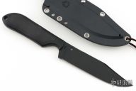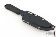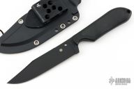 This Perrin inspired bowie by Spyderco has a black VG-10 clip point blade with hidden tang and notched thumb rest. Blade stock is .156", depth is 1.147". Handle is black plastic and rubber. Comes with Spyderco Kydex sheath. Has a couple light sheath scuffs, excellent condition otherwise.