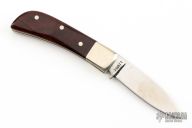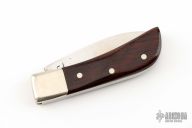 This slipjoint by Ron Little features a mirror polished blade with nail nick. The handle has nickel silver bolsters, cocobolo covers, nickel silver liners and stainless steel spring. #201. Has light scratches, otherwise good condition.