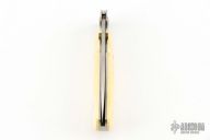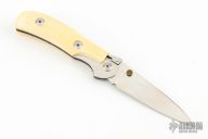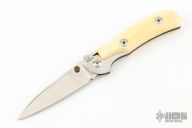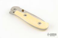 This One Hand Knife features mammoth ivory scales and a satin finished blade. Includes original box. Excellent condition.
