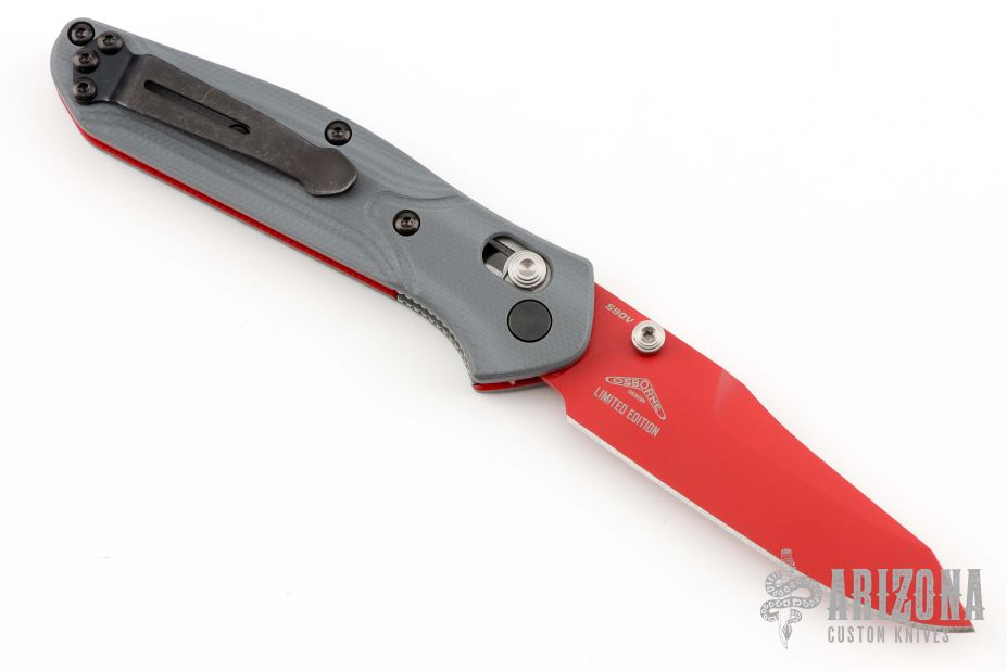 With an eye-catching pop of fluorescent red G10 contrast against dark gray G10, the 945RD-241 Mini Osborne is designed to stand out and be noticed. This versatile EDC folder will enliven every task with a CPM-S90V premium stainless-steel blade with a Red Cerakote finish for excellent wear resistance and edge retention. From outdoor recreation and professional readiness to daily tasks and chores, add some color to your world with the unique 945RD-241 Mini Osborne.