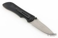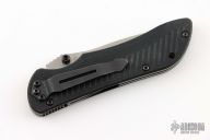This Mini Stryker by Benchmade features a bead blasted spear point blade with a plain edge, dual thumbstuds and notched thumbrest. The handle has black G-10 scales, titanium liners, and a tip down black stainless steel clip. This is a discontinued model. Comes with drawstring bag and original box. First Production run #187/1000. Excellent condition.