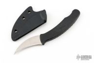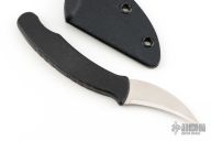 This L-via by Kopis Design features a satin finish hawkbill blade with thumb ramp, .061" blade stock and .784" blade depth, hidden tang construction. The handle is glass filled nylon. Comes with a kydex sheath and original box. Excellent condition.