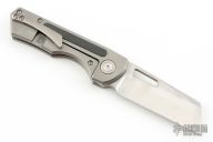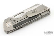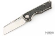 This Production Yeager by Brian Brown features a wharncliffe style blade with belt satin finish. The handle has a bead blast finish titanium frame with titanium pivot collars, CamoCarbon "Blackout" inlays, titanium tip up clip and backspacer. Has some scuffs/scratches, otherwise good condition.