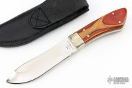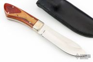 This fixed blade from P. Sheehan features a satin finish drop point blade with .239" blade stock and 1.284" blade depth, full tang construction. The handle has nickel silver bolsters with dymondwood scales and nickel silver pins. Comes with a black leather sheath. Excellent condition.