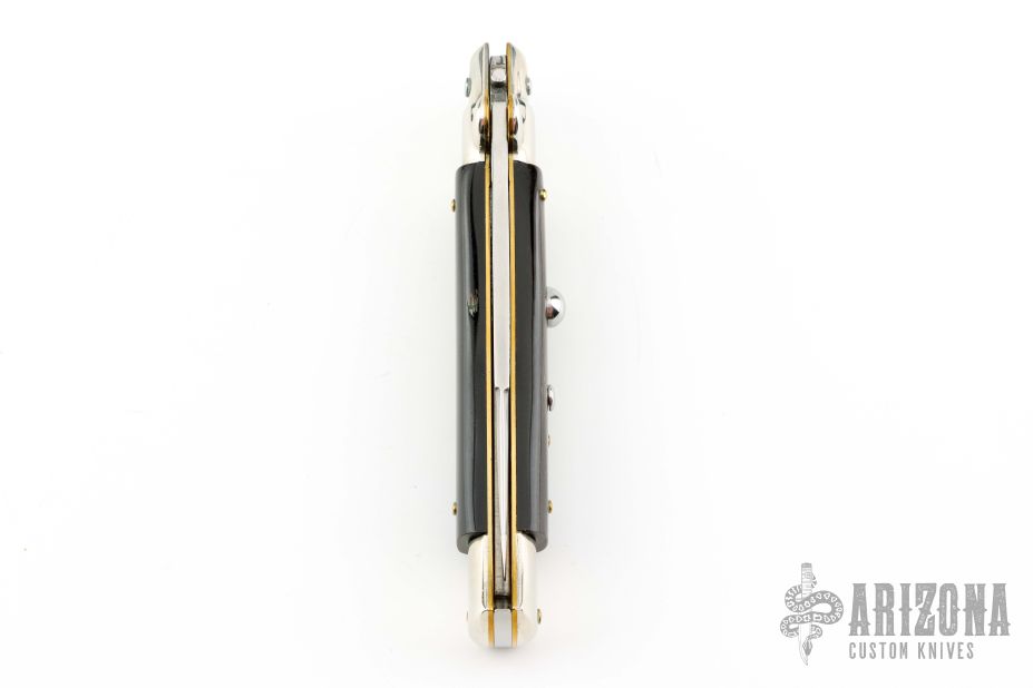 This Picklock by Frank Beltrame features a mirror polished spear point blade with false top edge. The handle has nickel silver bolsters, front and rear, buffalo horn scales, brass liners, stainless spring.  Limited edition 2013. Has some light scratches, excellent condition otherwise.