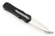 This Excalibur OTF features a black aluminum handle with a mirror polished double edged blade. Tip down titanium clip. Has some scuffs and scratches, great condition otherwise.