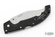 This Extra Large Voyager by Cold Steel features a stonewash finished recurve clip point blade with dual thumbstuds. The handle has a black FRN frame with tip up clip and lanyard hole. Taiwan Made. Has some light scratches, has some wear on the clip finish, good condition otherwise.