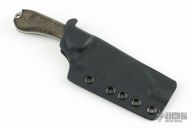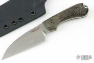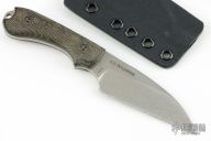 This Guardian3 Wharncliffe by Bradford Knives features a tumble finished wharncliffe blade with notched thumbrest, .141" blade stock and 1.216" blade depth, full tang construction. The  handle has black canvas micarta scales. Exposed tang pommel with lanyard hole. Includes original box, papers and kydex sheath. Excellent condition. Has "BLEM" on the blade.
