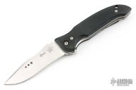 This Stinger linerlock by Rick Lala of Korth Cutlery features a satin finish blade and milled black G10 scales. Titanium deep carry, tip up clip. Notched thumbrest. Includes IKBS (Ikoma-Korth Bearing System) for smooth and fast opening that requires no wrist action. Perfect function. Has some scuffs and scratches, good condition otherwise.